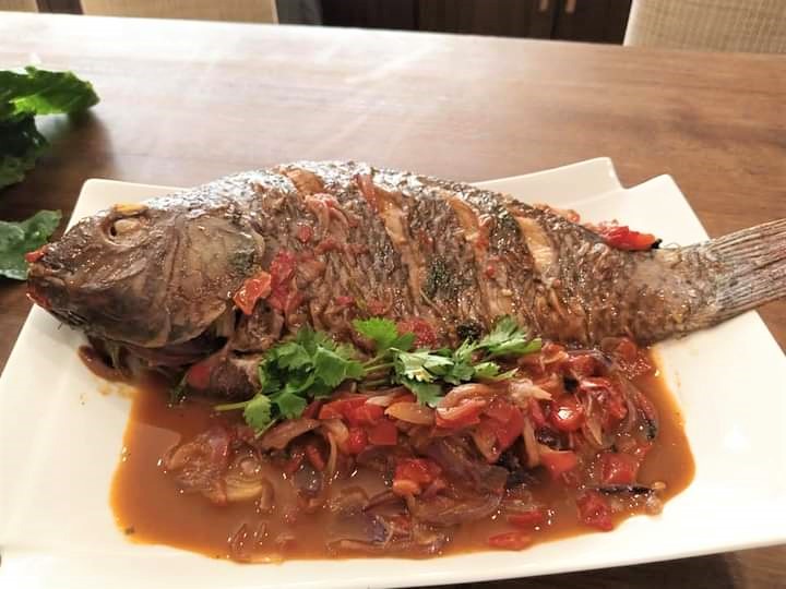 Our Menu PRAWNS CRACKER 炸虾片 Ksh 250 DRY RADISH WITH PORK 萝卜干小炒肉 Ksh 700 PORK WITH CELERY芹菜肉片 Ksh 700 PORK WITH CABBAGE包菜炒肉 Ksh 700 PORK WITH CHILLI 辣椒小炒肉 Ksh 700 PORK WITH BLACKBEAN SAUCE豆豉肉片Ksh 700 SWEET AND SOURPORKWITH PINEAPPLE糖醋菠萝肉 Ksh 700 TOFUWITHMINCEDPORK肉沫豆腐 Ksh 600 PORK WITH MUSHROOMS蘑菇肉片 Ksh 700 SLICED BEEFIN OYSTER SAUCE蚝油牛肉 Ksh 700 DRY CHILLI BEEF 香辣牛肉 Ksh 700 BEEF IN BLACKBEAN SAUCE豉汁牛肉 Ksh 700 BEEF WITH MUSHROOMS蘑菇牛肉 Ksh 700 BEEF WITH GREEN PEPPER青椒牛柳 Ksh 700 CHICKEN MUSHRCCM SOUP鸡丁蘑菇汤 Ksh 250 PRAWNWITH TOFU SOUP 豆腐明虾汤 Ksh 550 Sizzling beef Ksh 900 PORKDUMPLING SOUP风味饺子汤 Ksh 500 BEEF WITH ONION洋葱牛肉 Ksh 700 BEEF WITH VEGTABLE时菜炒牛肉 Ksh 700 TOMATO EGG DROP SOUP蕃茄鸡蛋汤 Ksh 480 BEEF IN BLACKBEAN SAUCE豉汁牛肉 Ksh 420 CHICKEN NOODLE SOUP鸡丁面条汤 Ksh 250 VEGTABLE SOUP蔬菜汤 Ksh 380 SPRING ROLL(vegetable/ chicken)春卷(蔬菜/ 鸡Ksh 100 BEEF IN TOMATO SAUCE番茄牛肉 Ksh 700 .GOLDEN FRIED BABY CORN炸嫩玉米 Ksh 350 CHICKEN IN SESMAE SAUCE棒棒鸡 Ksh 700 CHICKEN WINGS IN SOY SAUCE (served spicy, medium or mild)酱鸡翅(辣、稍辣或不辣)Ksh 800 PORK SPARE--RIES IN SOY SAUCE (served spicy, medium or mild)酱猪排(辣、稍辣或不辣)Ksh 880 BRAISED FISH CUBES IN CHILLI SAUCE 干烧辣味鱼块Ksh 880 STEAMED CRABS清蒸蟹 Ksh 1500 STIR--FRIEDLOBSTER红烧深海大龙虾Ksh 2500 STEAMED CRABS清蒸蟹 Ksh 1500 CURRY CRABS咖喱螃蟹 Ksh 1500 CHILLI PRAWNS WITH GARLIC蒜蓉虾仁 Ksh 1200 SEAFOOD SOUP WITH VEGETABLE 海鲜汤 Ksh 1300 PRAWNS WITH CASHEWNUTS腰果炒虾仁Ksh 1200 FISHFILLET WITH GREEN PEPPER青椒鱼片Ksh 780 SWEET AND SOUR PRAWNS糖醋明虾球 Ksh 1200 SIZZLING PRAWNS铁板明虾 Ksh 1300 SWEETANDSOUR FISH 糖醋鱼Ksh 780 TILAPIA FISH IN BROWN SAUCE红烧罗非鱼 Ksh 780 HOMETOFU家常豆腐 Ksh 500 CHINESE CABBAGE IN VINEGER醋溜白菜Ksh 400 MUSHROOMS COOKED WITH CAULIFLOWERS花菜蘑菇 Ksh 480 . CHICKEN WITH CASHEWNUTS 宫保鸡丁 Ksh 700 CHIVES WITH EGGS 韭菜炒蛋 Ksh 480